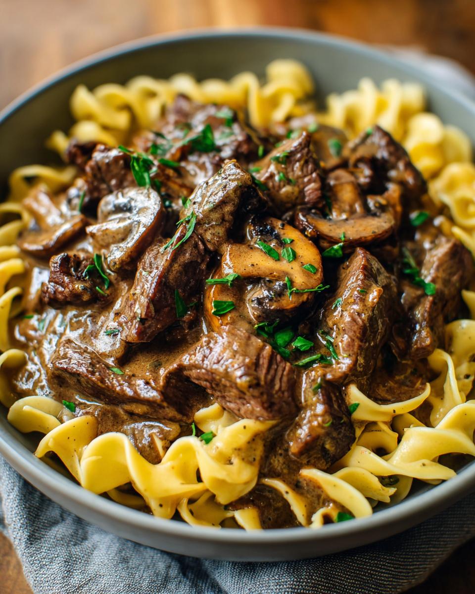 Oh, Beef Stroganoff! Just the name makes me think of cozy evenings and dinner that feels like a giant hug. There’s something magical about tender strips of beef swimming in the creamiest, dreamiest mushroom sauce, all spooned over fluffy noodles. It’s one of those classic comfort food dishes that just never gets old, you know? This recipe is my go-to because itโs wonderfully classic, super straightforward, and honestly, quite quick to whip up for a weeknight meal that tastes like a weekend treat. I remember making a huge batch for a friend whoโd just had a baby, and seeing the look on her face when she took that first bite? Pure bliss. This is the Beef Stroganoff that truly satisfies.