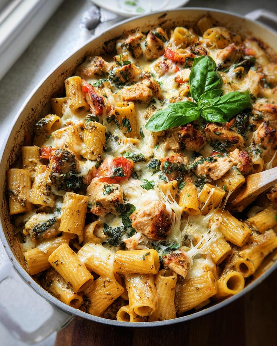 PrintChicken Pesto Pasta Bake (Family Favorite)