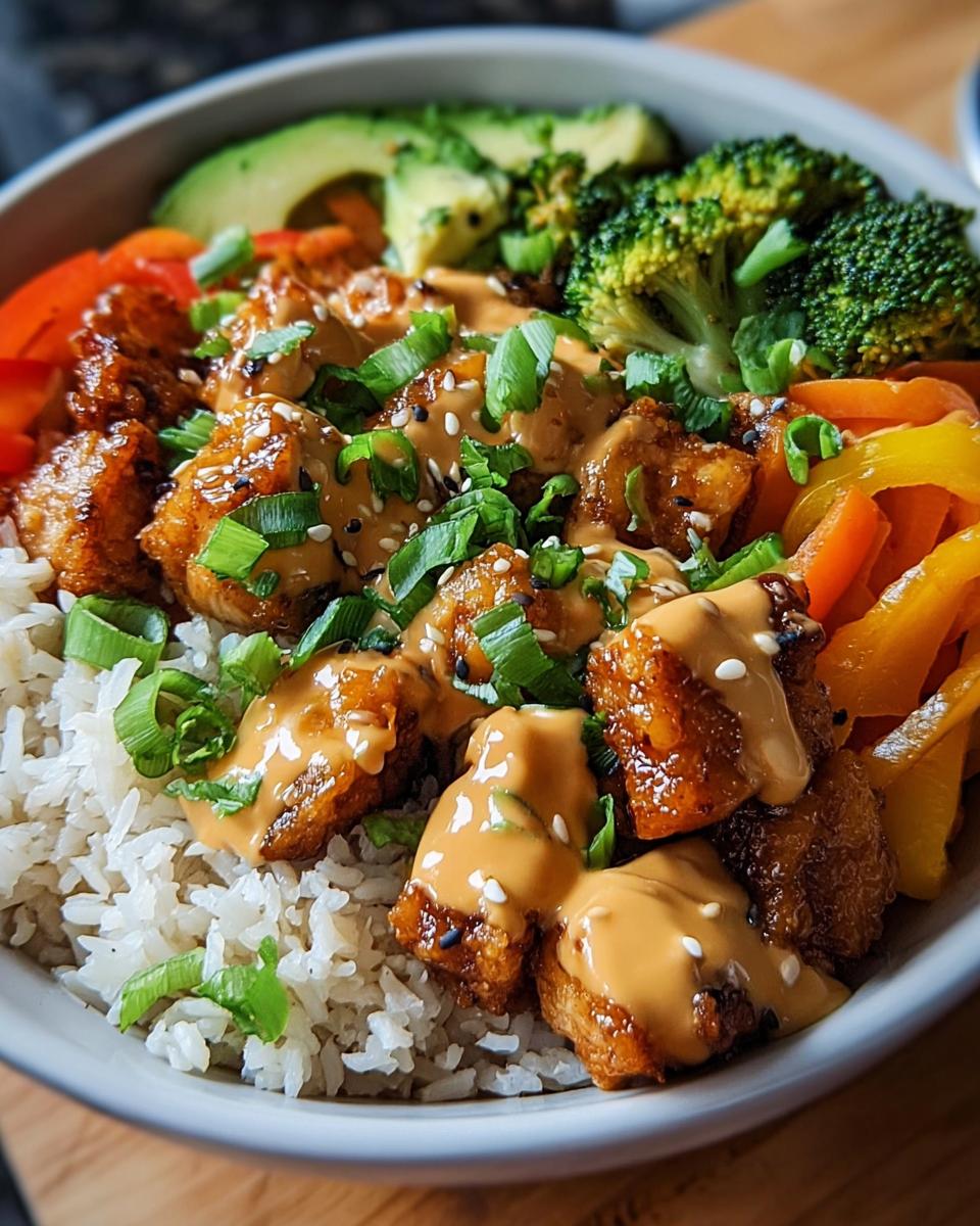 Okay, so you’ve made the bowl, and it’s delicious, right? But what if you want to take it from “great” to “OMG, I need this again tomorrow”? I’ve got a few tricks up my sleeve! For instance, I sometimes swap out the chicken breast for thighs if I want something a little more forgiving and flavorful โ they just stay extra juicy. And veggie-wise, don’t be afraid to throw in whatever youโve got hiding in the fridge! Snow peas, edamame, maybe even some shredded cabbage for extra crunch? All fair game! I actually love prepping the chicken and chopping the veggies the night before. It makes assembling dinner SO much faster. If your sauce seems a little too thick, just whisk in a tiny splash of water or even some of the reserved cooking oil from the chicken. One thing I always try to remember is to not overcrowd the pan when cooking the chicken; it makes all the difference for getting that nice golden sear instead of just steaming it. You can find even more amazing ideas over on my Bang Bang Chicken Bowl 7 Pro Tips page!