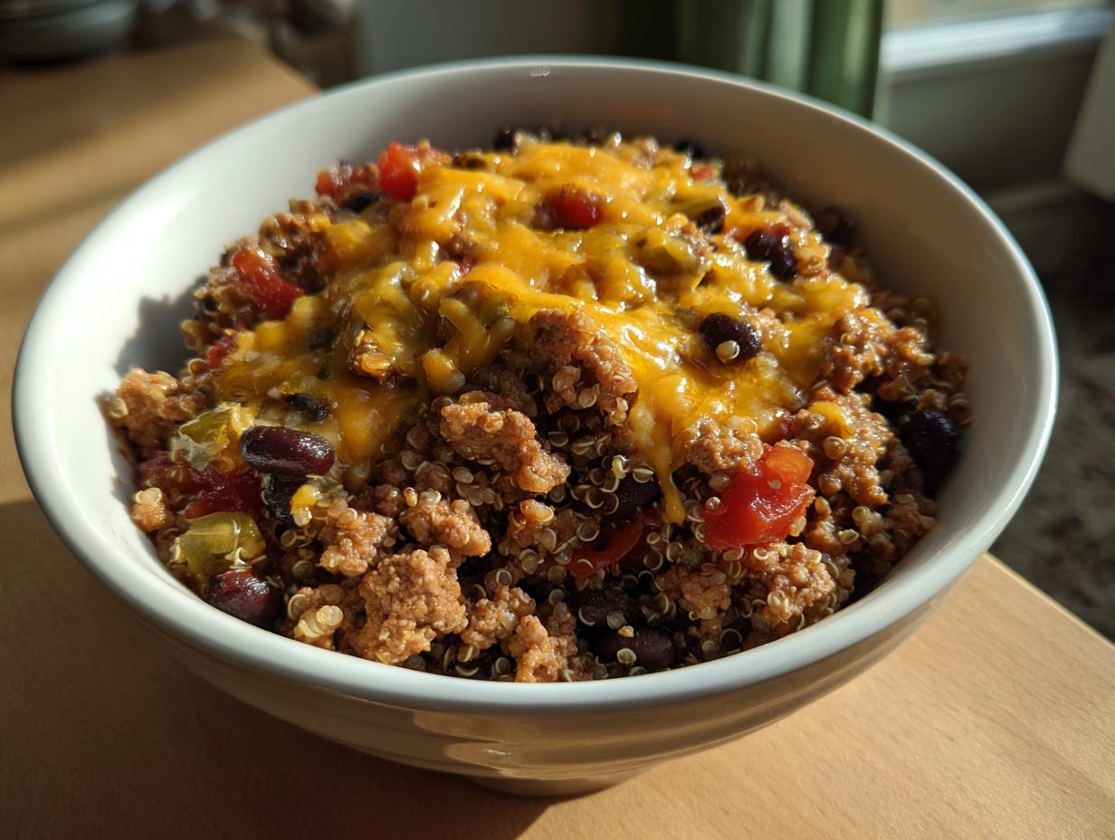 I’ve fed this to picky eaters (my own included!) and it’s always a hit. The combination of seasoned turkey, hearty beans, fluffy quinoa, and a touch of salsa and cheese is just so comforting and delicious. Itโs not spicy unless you want it to be, and everyone loves a good cheesy topping, right? Itโs a crowd-pleaser that still packs a nutritional punch.