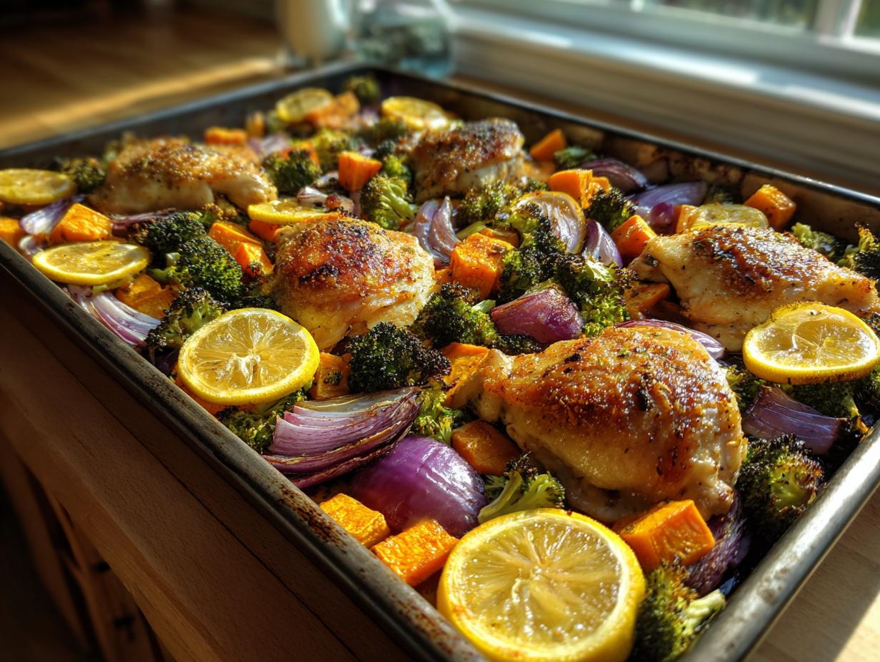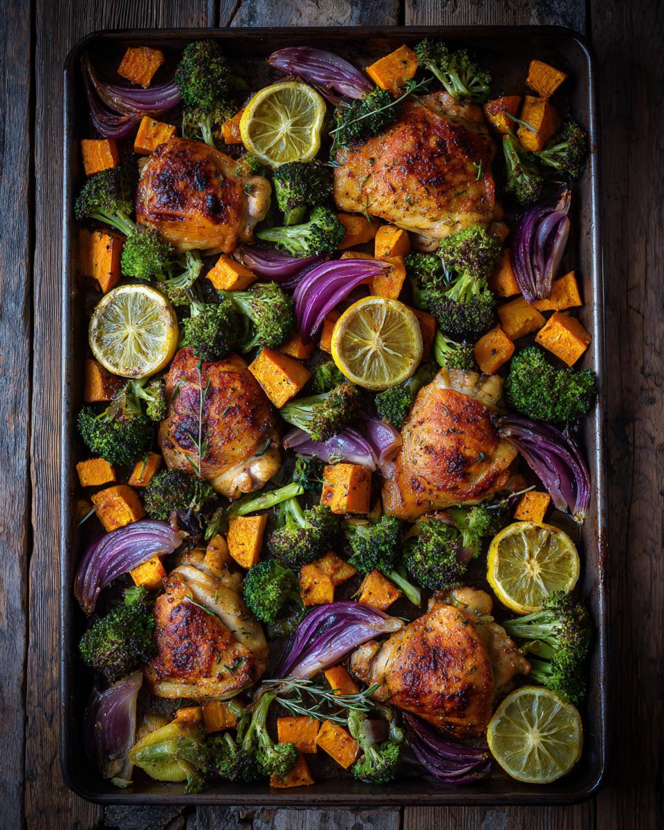 Keywords: sheet pan chicken, roasted vegetables, healthy dinner, clean eating, one-pan meal, lemon herb chicken, easy recipe