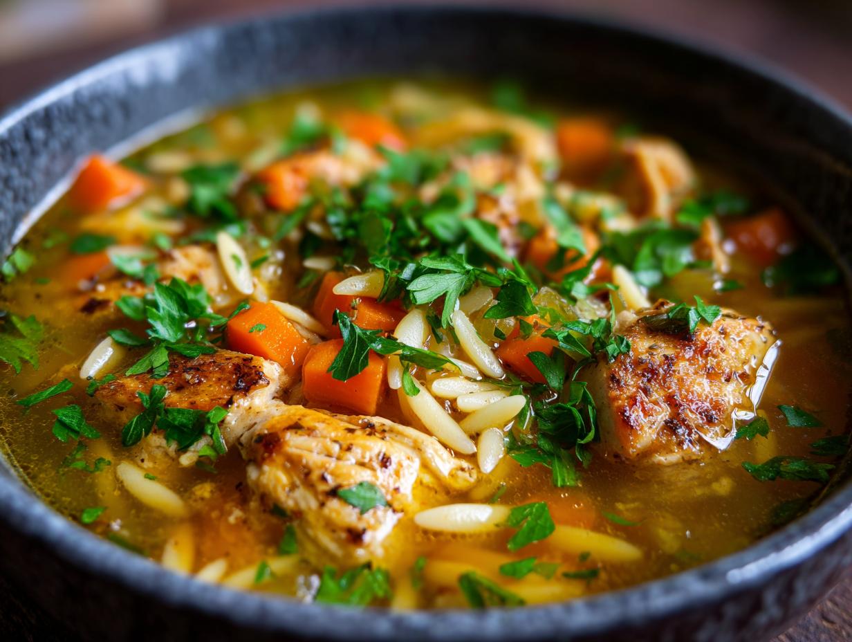 A bright and comforting chicken soup with a zesty lemon flavor.