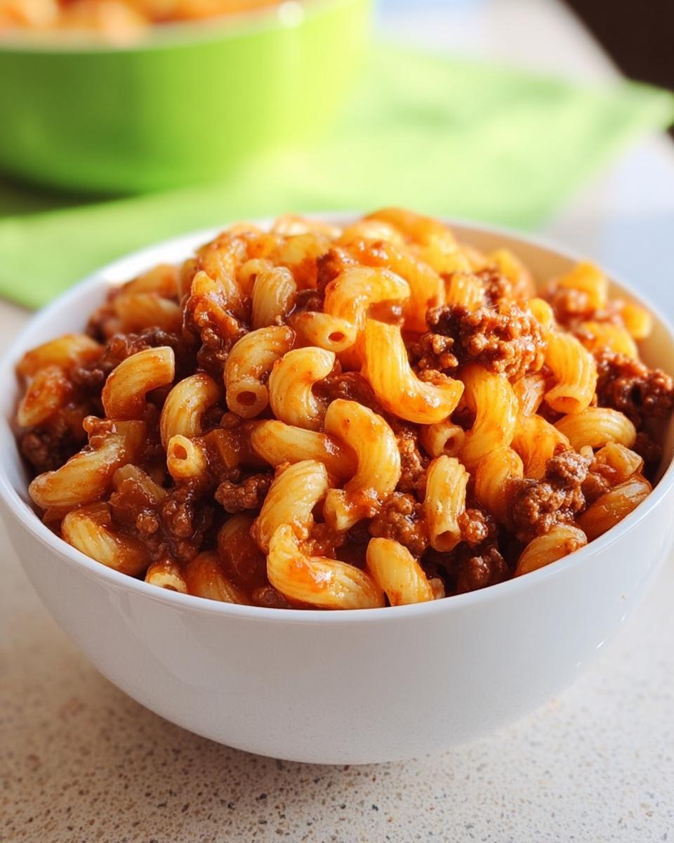 A simple, satisfying one-pot meal featuring ground beef, macaroni, and tomato sauce, perfect for a quick weeknight dinner.