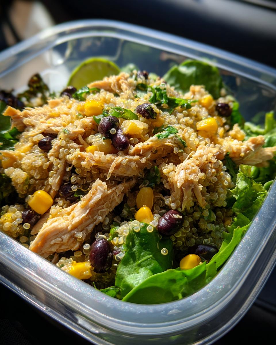 That figure comes straight from my standard calculation based on two cups of shredded chicken breast mixed across four servings, plus the boost from the black beans and quinoa. It’s certainly a high-protein meal, perfect for keeping you full until dinner time! If you were to use tuna instead of chicken, the protein count might nudge up slightly, too. Itโs a super satisfying lunch!